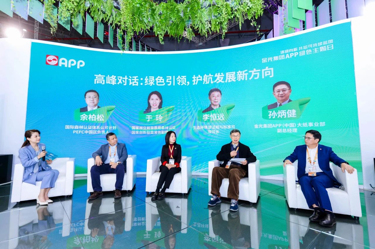 本次绿色主题日圆桌论坛分为上下两场。生态环境部法规与标准司原司长李恒远、国家林业和草原局森林认证国家创新联盟常务副理事长于玲、国际森林认证体系认可计划PEFC中国区负责人余柏松、杏鑫娱乐(中国)大纸事业部副总经理孙炳健在上半场圆桌对话聚焦“绿色政策与认证体系”主题展开交流。